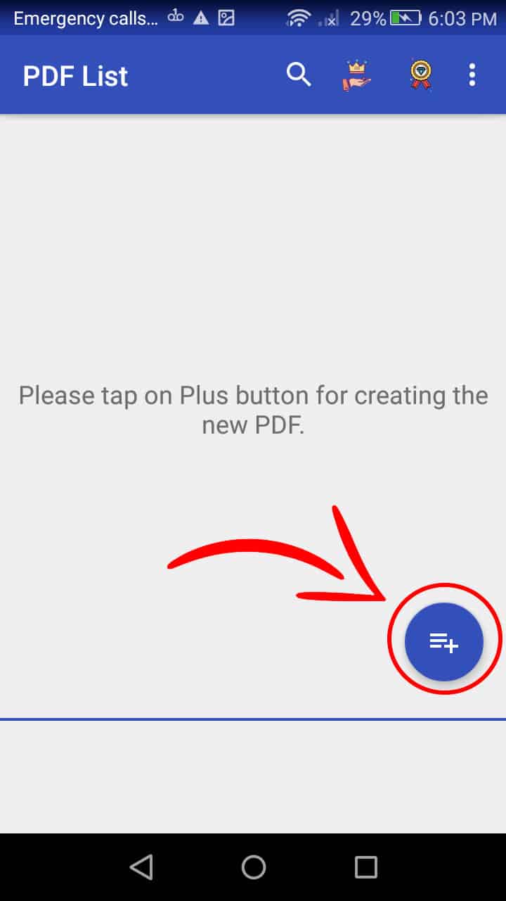 Una vez instalado abrimos la aplicación y presionamos el signo + para comenzar a crear el PDF.