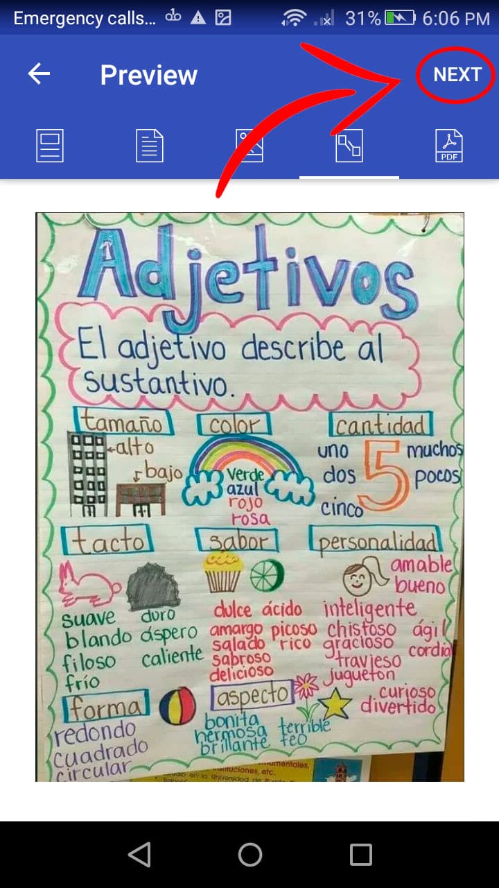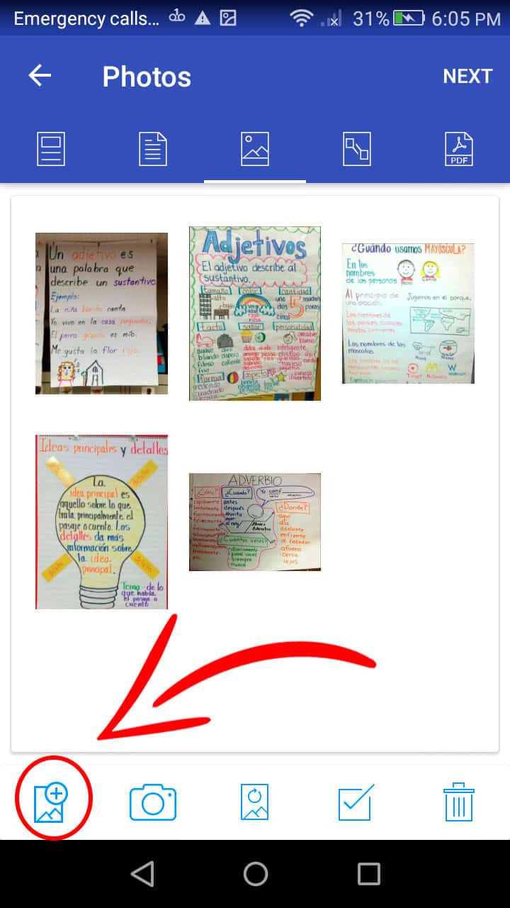 Eliges las fotos de las evidencias que quieres convertir en pdf, ajustas el orden de aquellas y le das en siguiente.