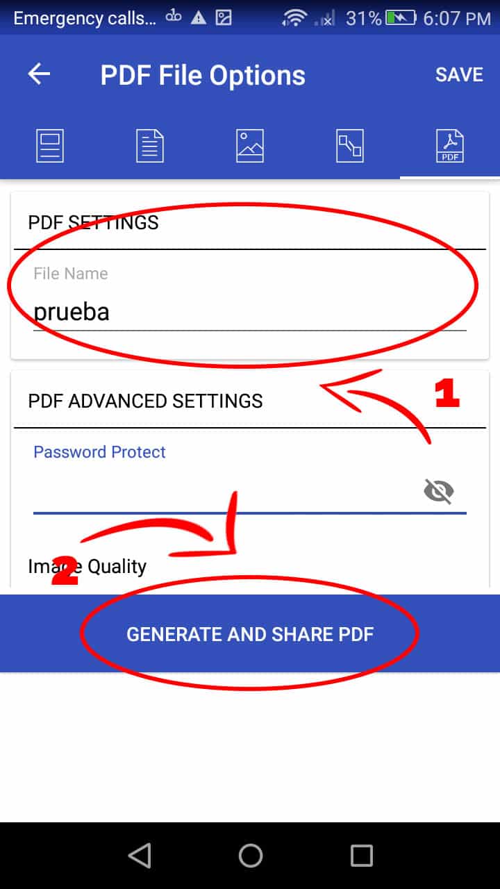 Colocas el nombre del PDF y le das en generar y compartir PDF.