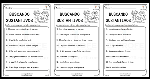 Estamos emocionados de presentar nuestras «Fichas Buscando Sustantivos para Primaria». Este recurso educativo está diseñado especialmente para maestros y padres de familia que desean ayudar